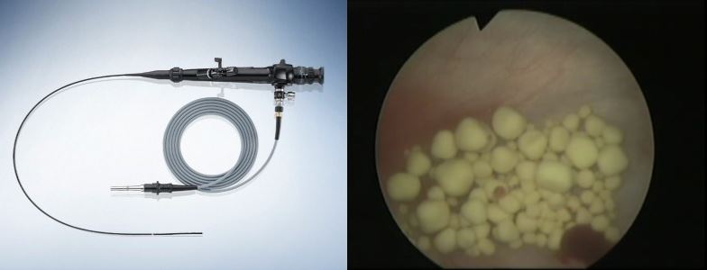 Wenn ein Harnröhrensteinen festsitzt und weder vor- noch zurückgeschoben werden kann, ist es mittels Laserlithotripsie möglich, ihn an Ort und Stelle zu zerkleinern und zu entfernen, ohne dabei die Schleimhaut der Harnwege weiter zu belasten.